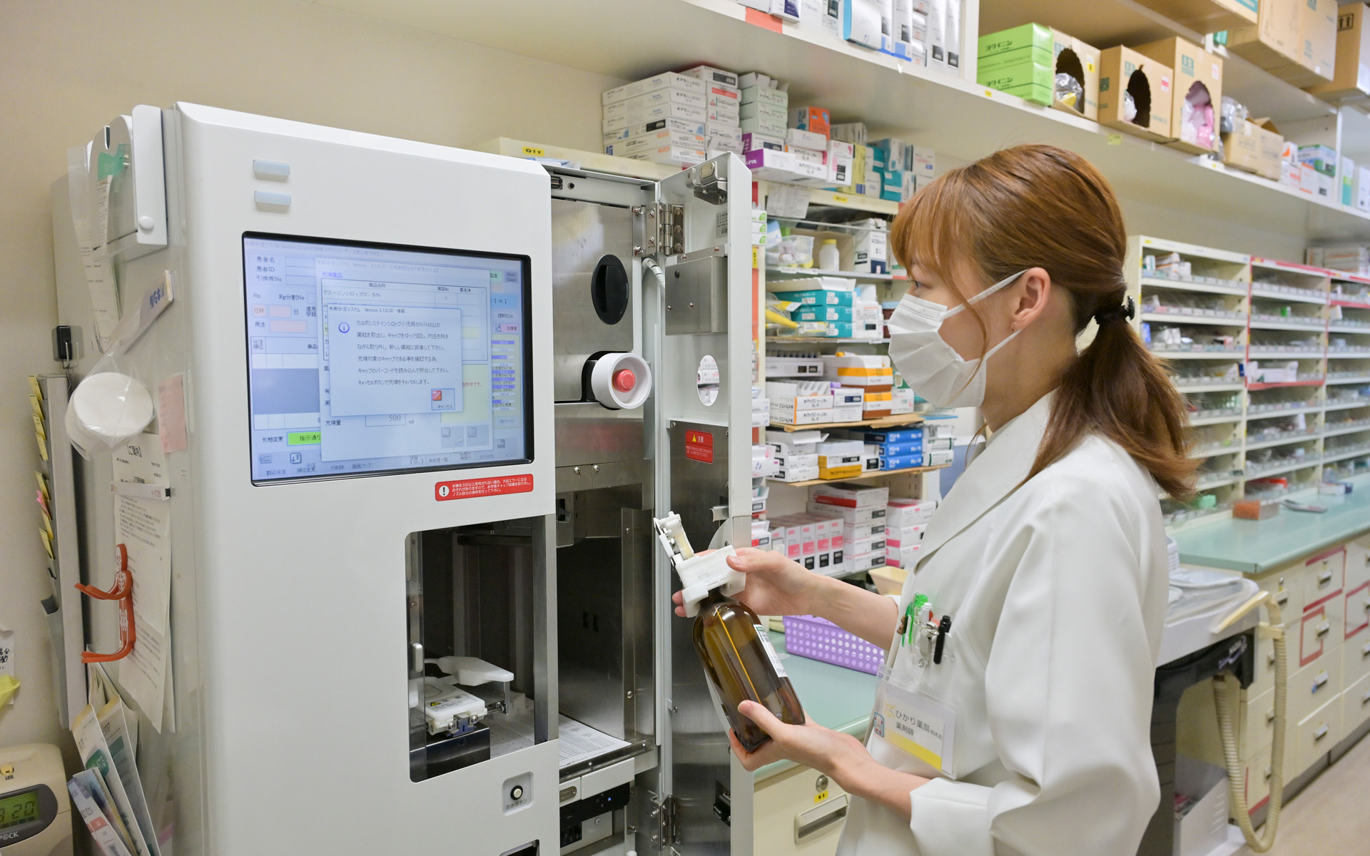 調剤にも最新の機械を導入しており「自動水剤調整機」「自動粉薬調整機」や「自動軟膏練機」等を導入し、待ち時間短縮に寄与しております。